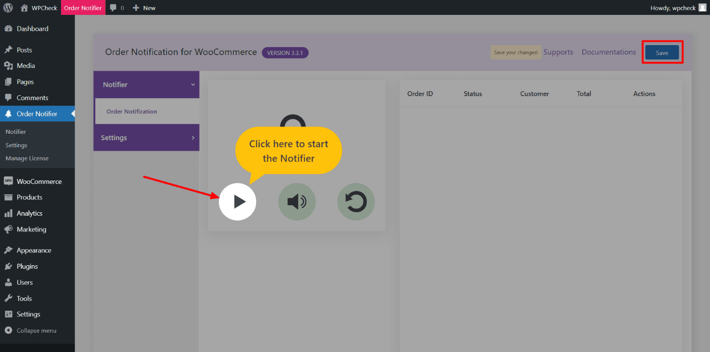 Again, get back to your website’s dashboard. Now you can see the Order Notifier Button situated on the upper side. You can also access Order Notifier from the Dashboard.