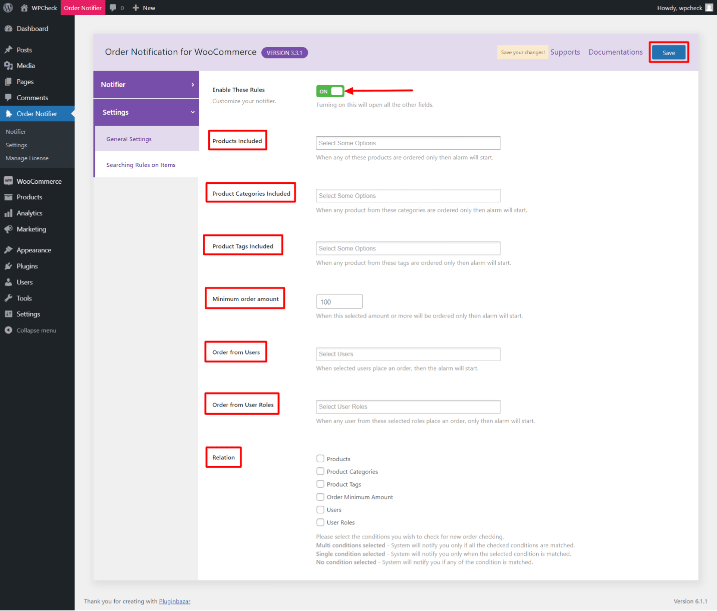 In addition, from the Product Categories Included option, you can choose specific categories for which you want to get the alarm. You will get the notification sound when a customer buys a product from the included category.