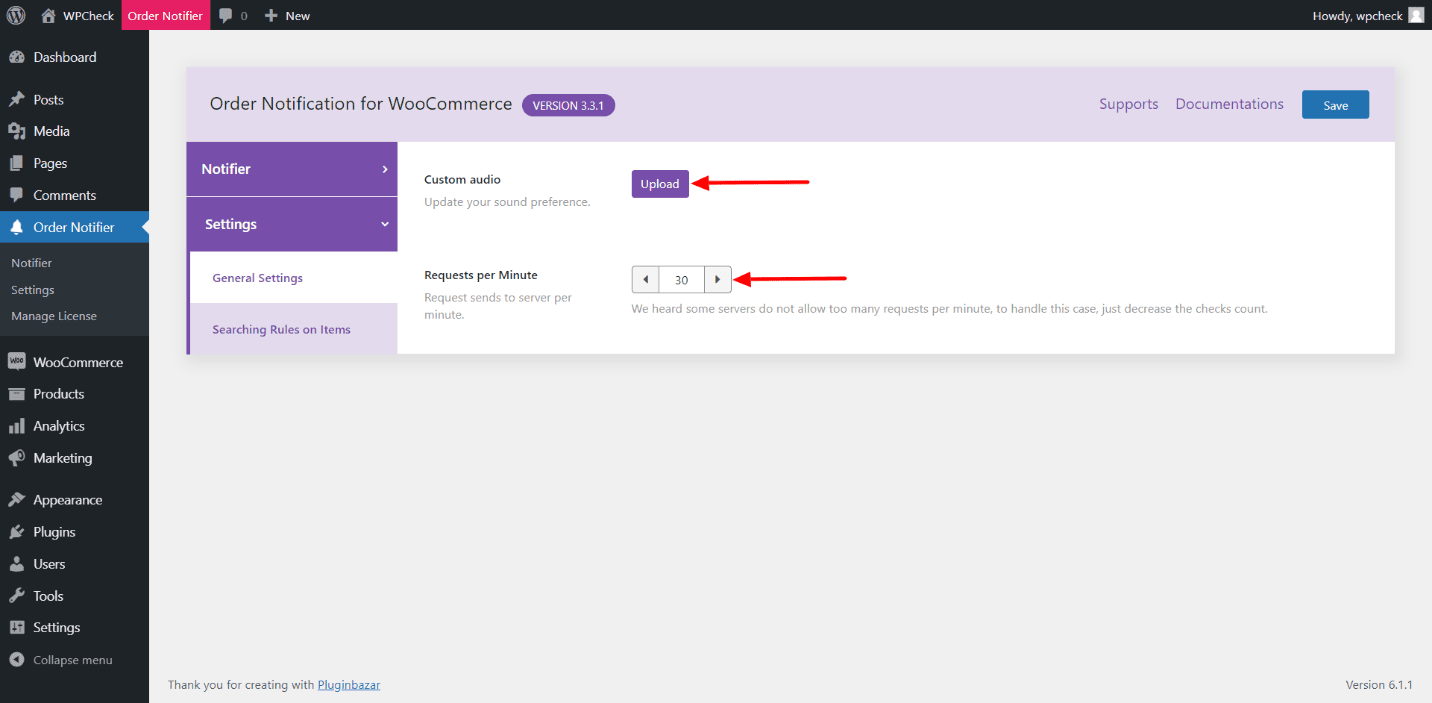 You can start customizing new order notification sound from the Settings tab. From the General Settings, you can upload custom audio; upload your favorite music or sound.